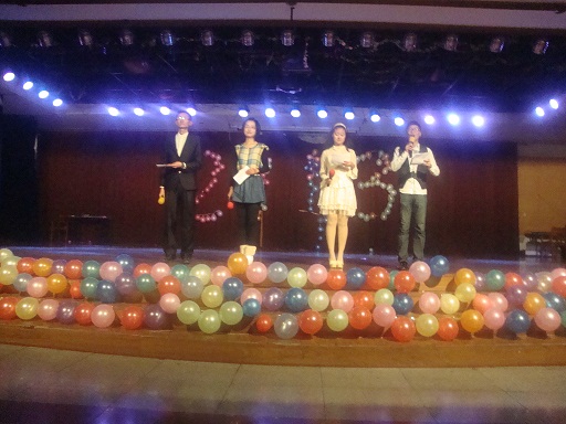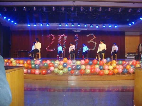接着,晚会在《欢腾》活跃的舞步中拉开帷幕,一个个精彩的节目缤纷登场。12级信计专业王仲儒同学带来的《你那么爱她》如羽毛般轻扬,打动了很多人的心扉,10级张建楠和李宏波同学共同演绎了一曲深情的《天生注定》,而12级核单招专业的合唱《向快乐进发》展现出了青春风采,研究生们也带来了颇具火辣风情的爵士舞,在灯光的渲染下既神秘又高贵,12级信计专业的舞蹈《青花瓷》则演绎出了古典女子的风情,11级核单招专业用VCR见证了他们这两年来在哈哈体育的成长历程,由许圣斌同学领舞的《江南STYLE》更是把全场的气氛推向了高潮,最后在翟国尧同学优雅的唱腔、扎实的功底演绎的《最后》歌声中,2013届元旦晚会缓缓落幕。