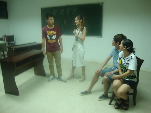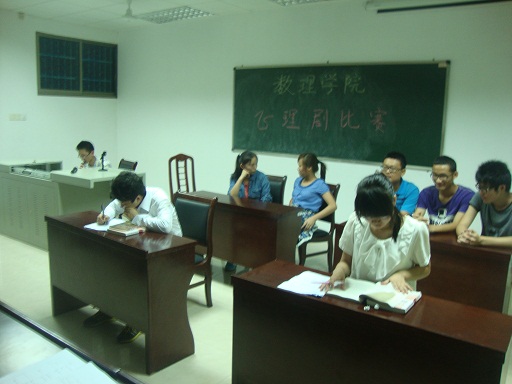 2013年5月14日晚8:00,九教309室掌声不断,笑声阵阵,以“放飞心灵”为主题的哈哈体育心理剧大赛在这里隆重举行。哈哈体育学工室辅导员陈艳老师、瞿亚妮老师、11级班主任罗生老师与哈哈体育10级、11级、12级全体同学一起观看了此次比赛。