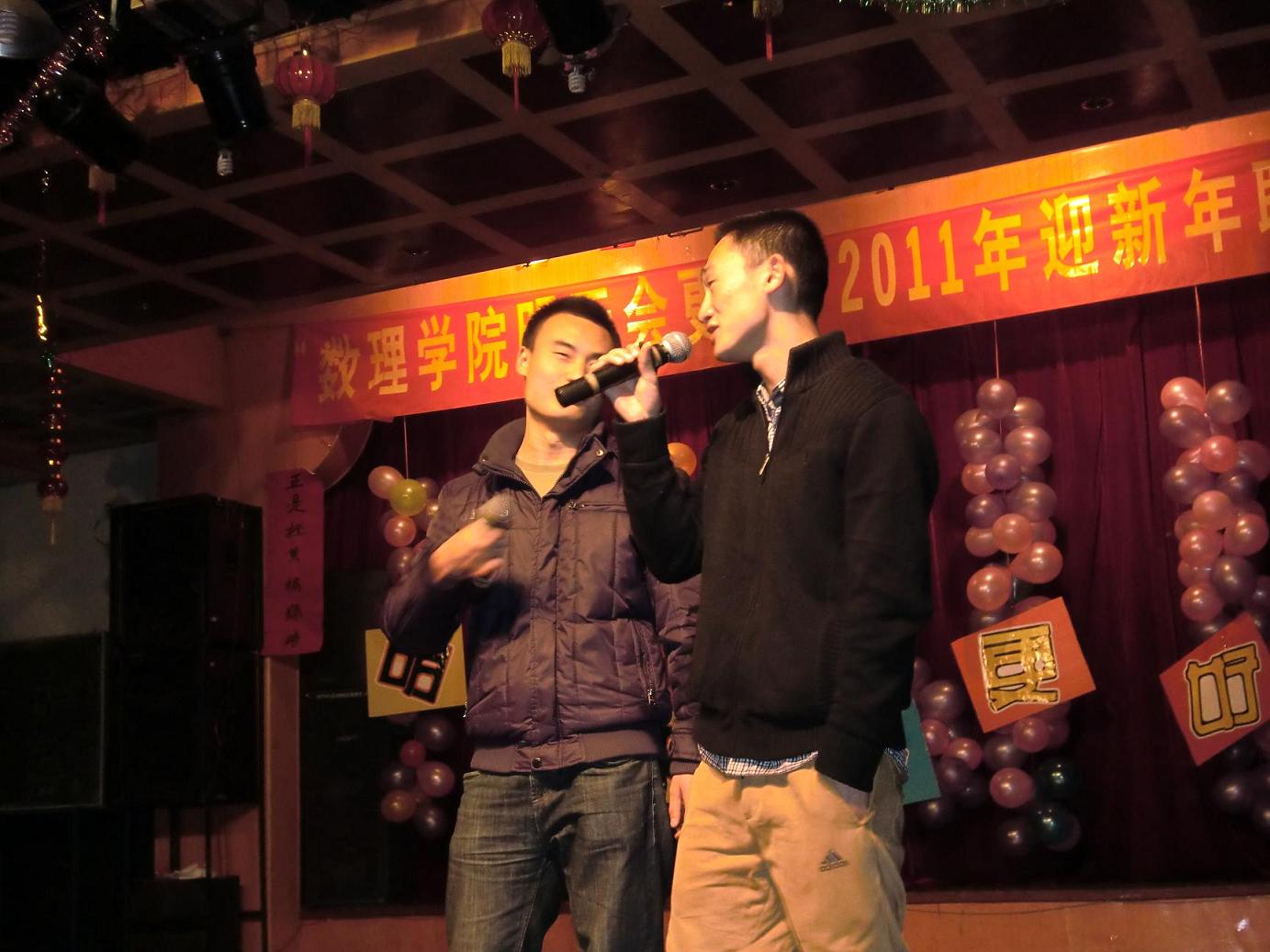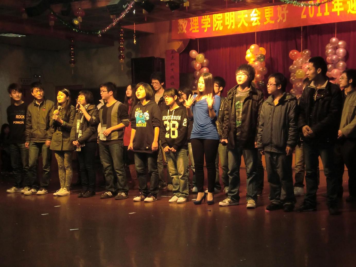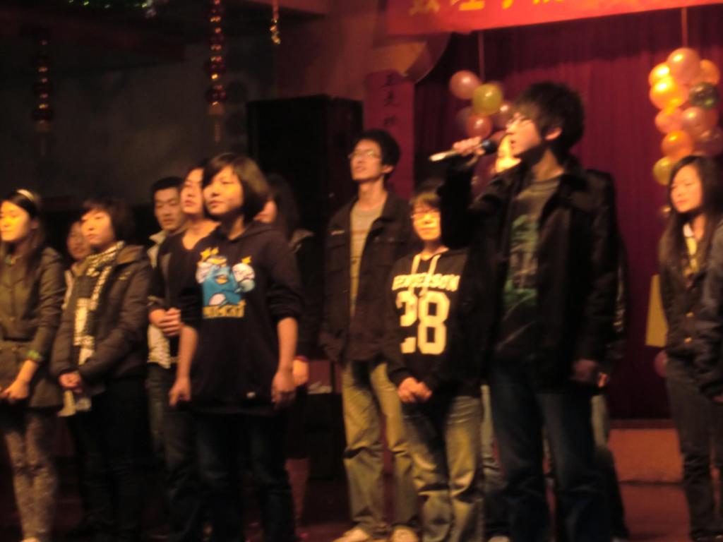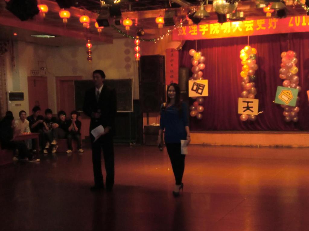 晚会于7;30开始,彭建军书记致开幕辞,并转达了远在加拿大的哈哈体育经理欧阳自根教授的祝福。接下来便是同学们为本场晚会精心准备的各种节目,其中舞蹈《就是我》,《幸福》,小品“斗地主”,歌曲《天使》、《心肝宝贝》、《老男孩》,太极和书法表演,游戏《瞎子被瘸子》、《踩气球》等赢得大家阵阵掌声。