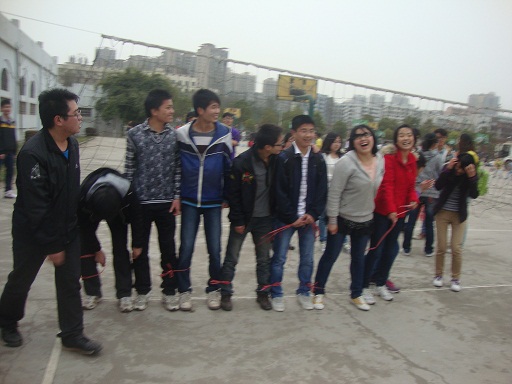 活动分为“星语心愿”、“爱心签语”、“放飞心灵,勇往直前”三大部分。“星语心愿”部分,各班女生写下愿望放到一个暗箱里,随机点取男生抽取纸条,被抽到的男生照着纸上的要求帮女生完成愿望。女生们的愿望花样百出,男生们应接不暇,但却都发扬了绅士风度,用最高的热情为女生们捧场。接着男生们的“爱心签语”更是表达了男生们对女生们的真诚的祝福;随后的“放飞心灵,勇往直前”将活动推向了高潮,跳绳比赛、夹气球比赛、十人十一脚等比赛项目让现场热闹非凡,几乎每个到场的同学都参与其中。
