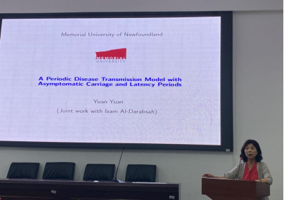 2023年10月29日下午,由HAHA体育科技部和哈哈体育联合主办的以A periodic disease transmission model with asymptomatic carriage and latency periods为题的讲座在崇德楼108开展,此次讲座在于让各年级硕士生充分了解生物数学中传染病模型的建立和求解过程。讲座由朱惠延教授主持,加拿大纽芬兰纪念大学袁沅教授主讲。