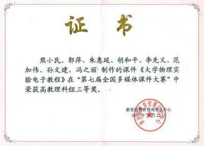 为了能够更好地适合公司实际的实验教学,满足实验教学改革的需要,物理实验室老师通过培训和教学竞赛不断提高自身的教学能力并获得多项竞赛奖,如湖南省高等公司物理实验青年教师讲课比赛一等奖、湖南省高等公司课堂教学竞赛三等奖、HAHA体育教学成果奖“二等奖”,全国老员工物理实验竞赛一等奖等。同时物理实验室出版了多部实验教材,编写了《大学物理实验补充教材》、《大学物理实验》和《大学物理实验教程》等教材。