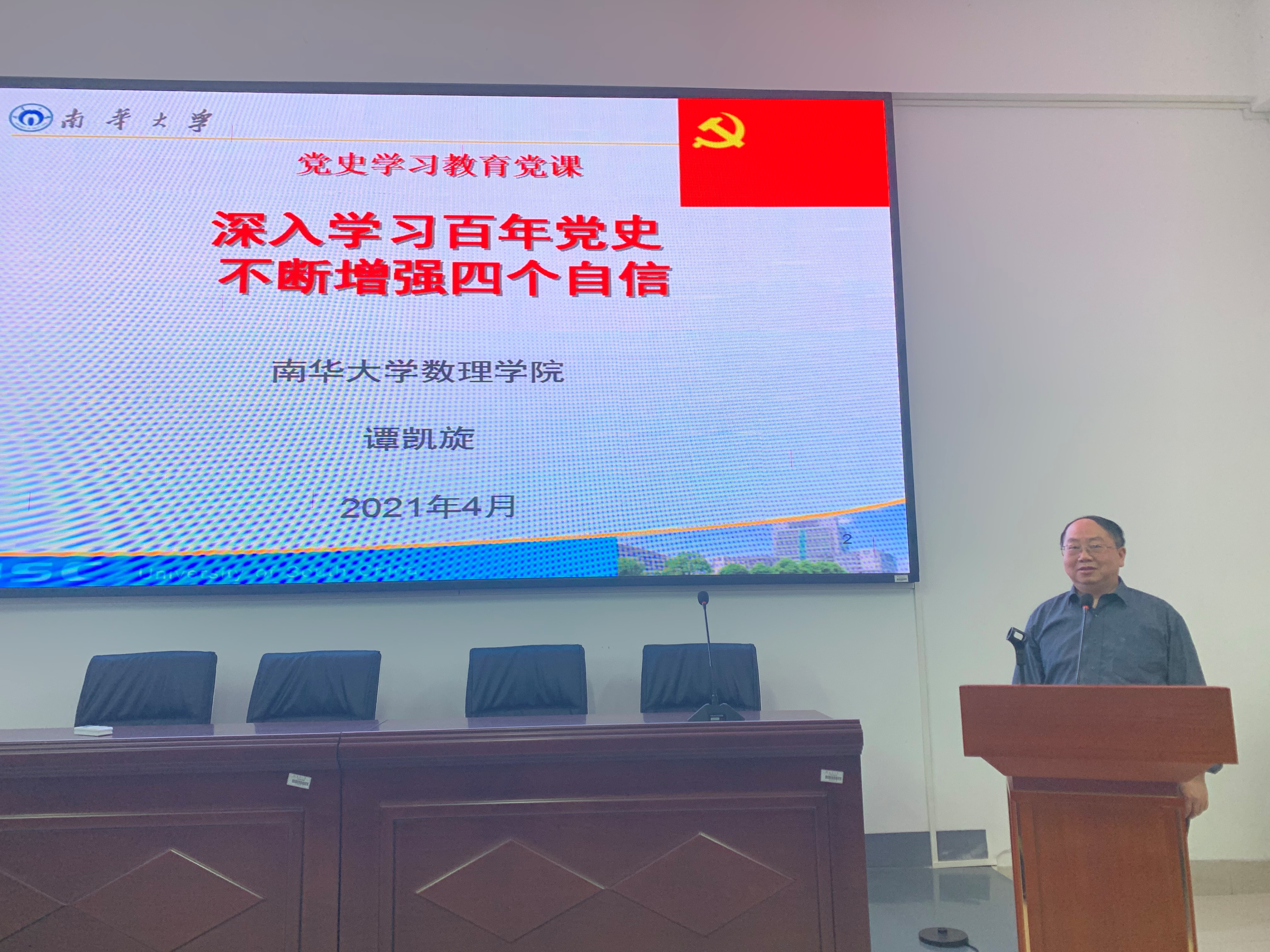 4月30日,数理公司党委书记谭凯旋为哈哈体育全院教师讲授了以《深入学习百年党史,不断增强四个自信》为主题的党课。