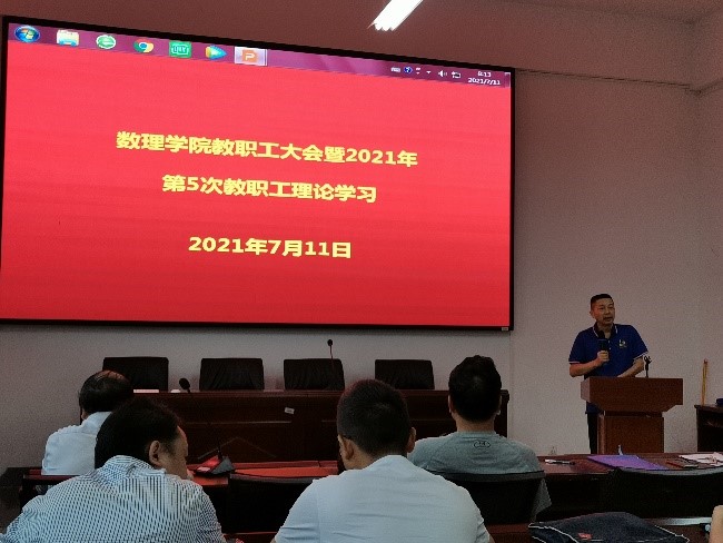 2021年7月11日,哈哈体育谭凯旋书记精心组织了2021年第五次教职工理论学习,全院员领导与各支部书记以及没课的教师参加了此次学习。