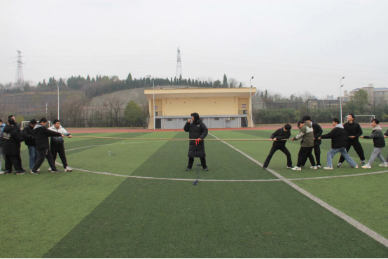 一条麻绳聚英雄,一片绿茵载热血。为了提高数理学子的身体素质、提高团队协作和团结合作精神、增强集体荣誉感、丰富校园文化生活,公司体育部于3月9日上午10时在雨母校区田径场组织开展2024年春季学期拔河友谊赛,来自2022、2023级各班的共计10支队伍120余人参加比赛。