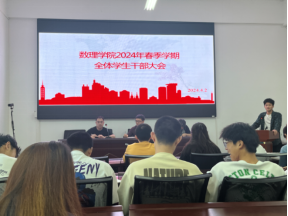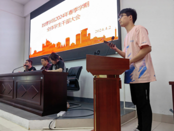 欧雷老师发言。他首先提醒同学们要注意宿舍安全,特别是随着雨季的来临,宿舍环境可能变得潮湿,大家要注意防潮防霉。同时,清明假期即将来临,欧老师提醒大家在外出时务必保护好自己的人身安全和财产安全,享受一个愉快而安全的假期。假期结束后,欧老师强调要开展班级日志工作,通过这一举措来营造良好的学风氛围,促进班级工作的顺利进行。对于换届工作,欧老师同样表达了殷切的期望,他希望同学们能够保持饱满的精神状态,薪火相传,继续为部门的发展贡献力量。
